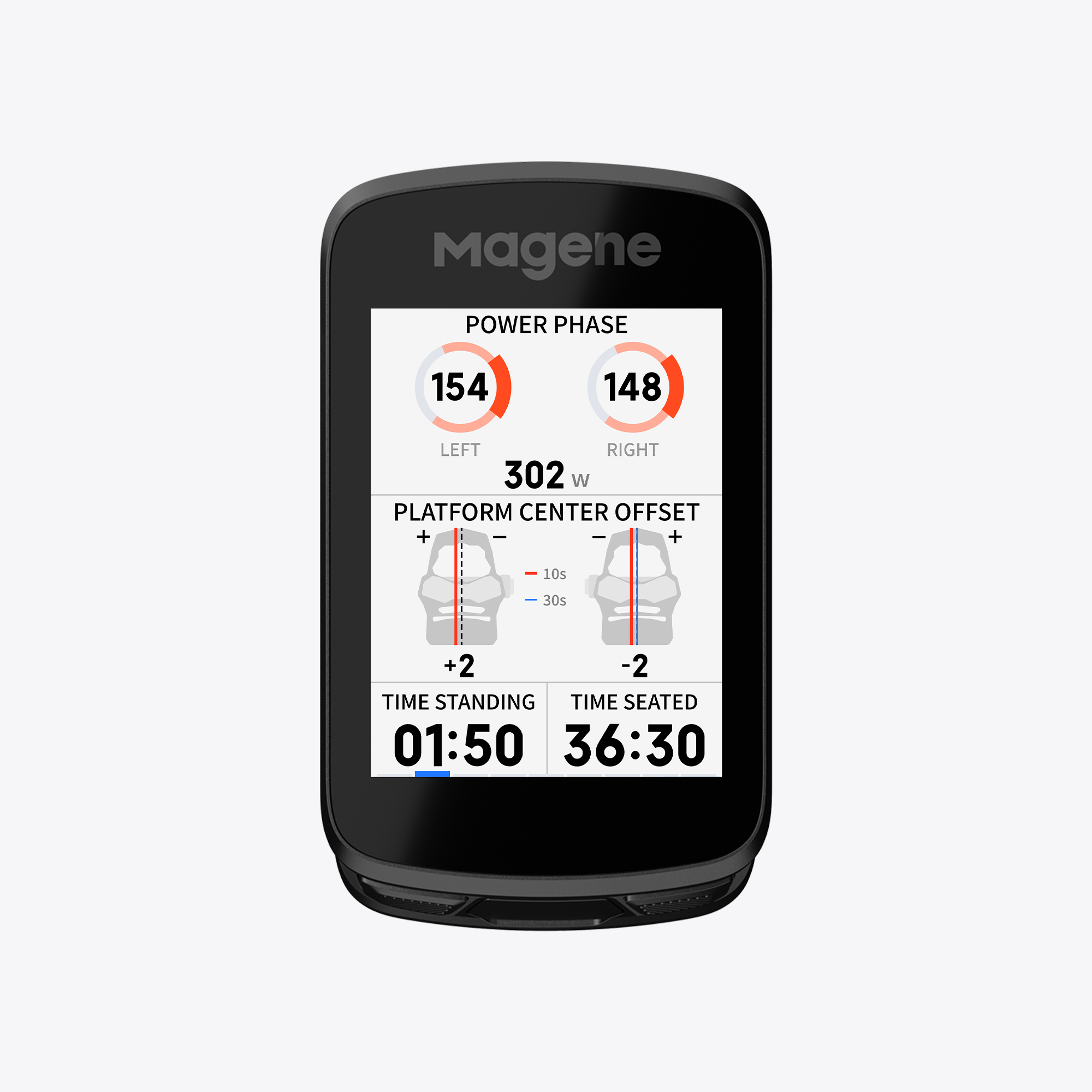 Offset pedálu: Zobrazuje posun mezi skutečným středem vašeho zdvihu pedálu a mechanickým středem pedálu. Upravte polohu zarážek nebo chodidla pro optimalizaci držení těla a zefektivnění každého zdvihu pedálu.