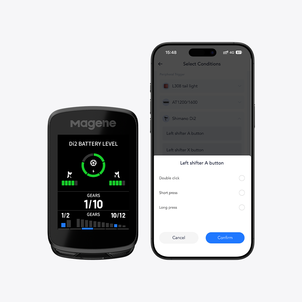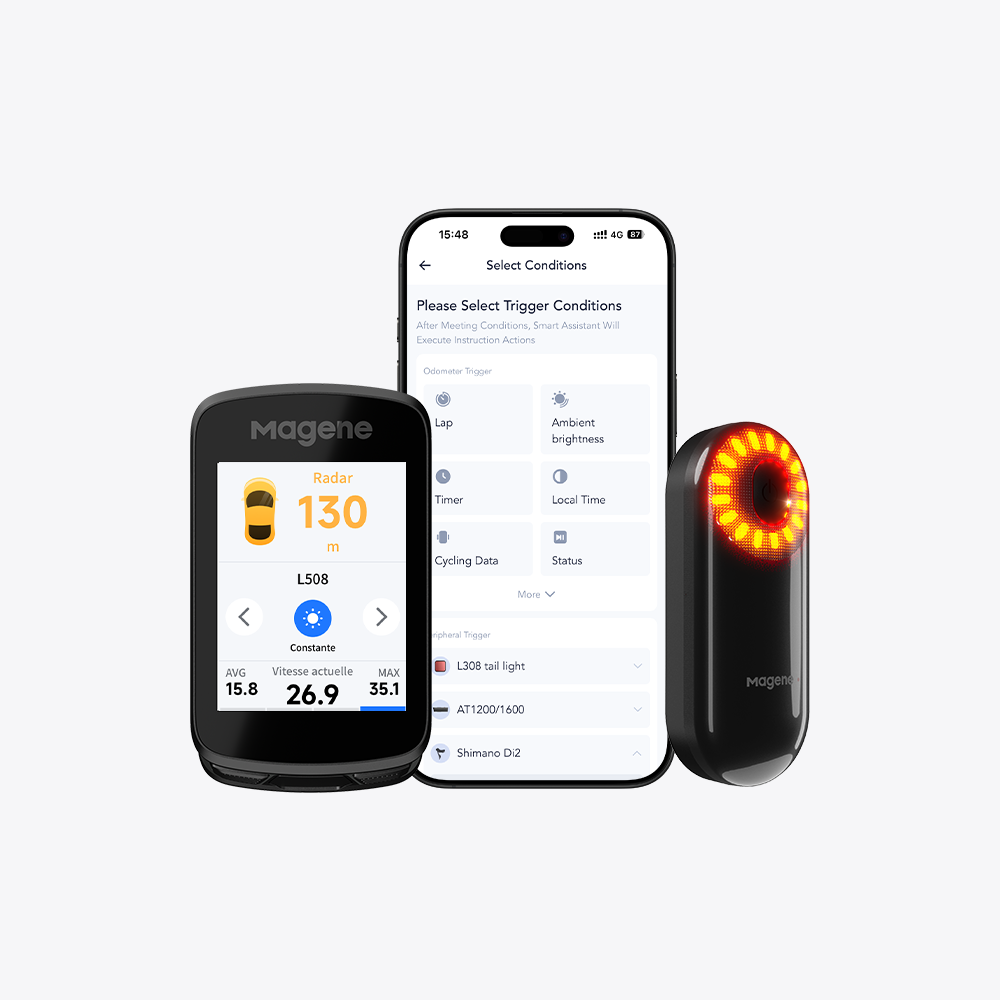 | Podporované zařízení | Snímač rychlosti, snímač kadence, monitor srdečního tepu, kombinovaný snímač rychlosti/kadence, měřič výkonu, inteligentní trenažér, radarové zadní světlo a inteligentní zadní světlo L308, kamera DJI, elektronický řadicí systém SHIMANO Di2 a Sram eTap, DJI & Insta360 Control |