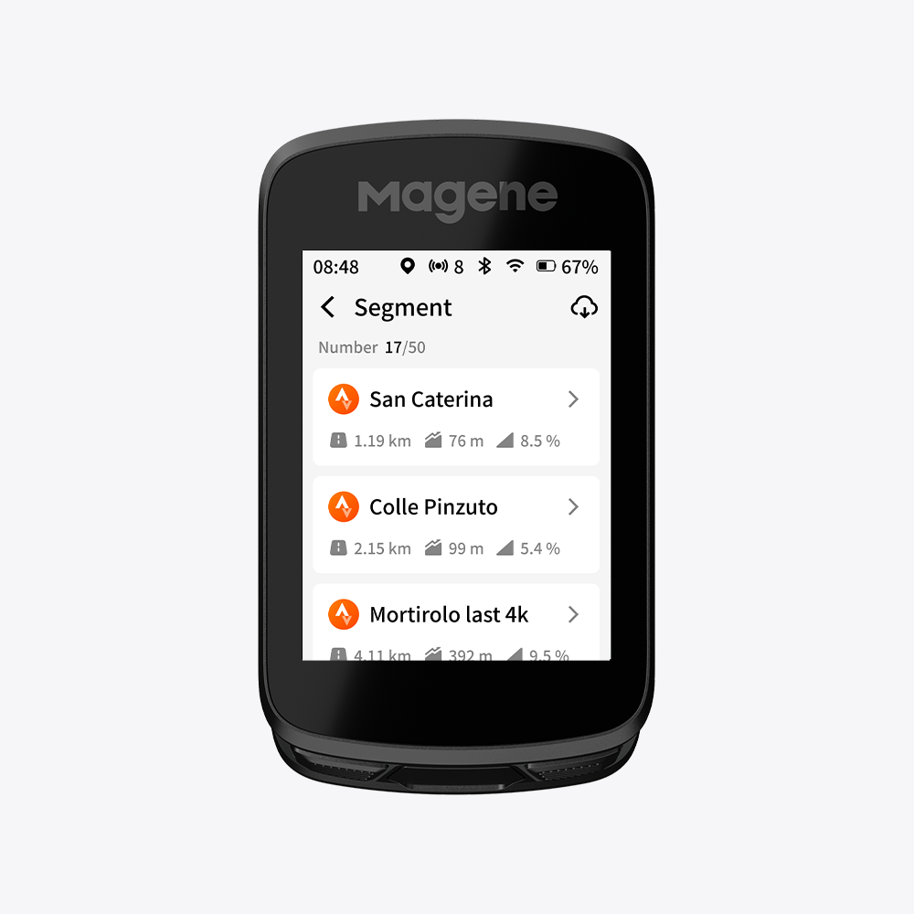 Zapojení uprostřed stoupání: I když zmeškáte začátek stoupání na trase, zařízení jej automaticky rozpozná a spustí upozornění na stoupání. Okamžitě vypočítá informace o zbývajícím úseku.